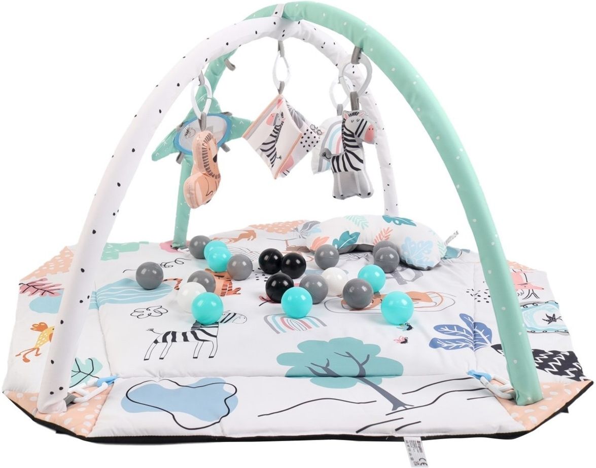 Mata edukacyjna dla niemowląt TinyMini Czuczuś 4w1, sensoryczna, interaktywna, suchy basen Mata edukacyjna TinyMini Czuczuś to wielofunkcyjna mata edukacyjna dla niemowląt, która wspiera rozwój dziecka już od pierwszych dni życia (0+). Łączy w sobie zabawę, bezpieczeństwo i stymulację sensoryczną, dopasowując się do kolejnych etapów rozwoju malucha.Dzięki przemyślanej konstrukcji i bogatemu wyposażeniu mata rośnie razem z dzieckiem — od leżenia na pleckach, przez tummy time, aż po raczkowanie.4 funkcje użytkowania – jedna mata, wiele możliwościMata edukacyjna TinyMini Czuczuś 4w1 może być używana na kilka sposobów: Mata do leżenia i zabawy – idealna dla niemowląt, z zawieszkami nad głową Tummy Time – wsparcie nauki leżenia na brzuszku dzięki poduszce w kształcie rogala Suchy basen z piłeczkami – podnoszone boki zapinane na rzepy tworzą bezpieczną przestrzeń Mata do raczkowania – większa powierzchnia po rozłożeniu boków Bogate wyposażenie i elementy sensoryczneW zestawie znajduje się wszystko, czego potrzebuje mata edukacyjna dla niemowląt: kolorowa mata z nadrukiem zwierzątek i przyrody 2 miękkie pałąki 5 zawieszek sensorycznych: - zebra z grzechotką- tęcza i lew z ruchomą kuleczką- książeczka sensoryczna z piszczkiem- bezpieczne lusterko poduszka do tummy time 20 kolorowych piłeczek do suchego basenu (turkusowe, czarne, białe, szare) Jak mata wspiera rozwój dziecka?Ta mata edukacyjna interaktywna dla niemowląt została zaprojektowana z myślą o rozwoju: stymuluje zmysły – wzrok, słuch i dotyk wspiera rozwój motoryki – zachęca do ruchu, sięgania i raczkowania poprawia koordynację oko–ręka zapewnia bezpieczną i komfortową przestrzeń do zabawy idealna zarówno do zabawy, jak i odpoczynku Mata edukacyjna dla niemowląt – od kiedy?Mata TinyMini Czuczuś jest odpowiednia już od pierwszych dni życia. Początkowo sprawdzi się jako mata do leżenia i zabawy, a z czasem jako mata do tummy time, suchy basen oraz mata do raczkowania.Idealny pomysł na prezentSzukasz praktycznego prezentu? Mata edukacyjna dla niemowląt TinyMini Czuczuś to doskonały wybór na: baby shower narodziny dziecka chrzciny Wskazówka dotycząca pielęgnacji:W przypadku większych zabrudzeń matę należy prać ręcznie w letniej wodzie z użyciem delikatnych detergentów.Dane techniczne: Przedział wiekowy: 0+ miesięcy Materiał: 100% poliester Hipoalergiczna 20 piłeczek Instrukcja montażu Wymiary produktu Wysokość: 55 cm Wysokość bandy: 15 cm Szerokość: 107 cm Długość: 100 cm Wymiary opakowania Wysokość: 7,5 cm Szerokość: 56 cm Długość: 62 cm Waga netto: 0,6 kg Waga brutto: 1 kg INFORMACJE NA TEMAT BEZPIECZEŃSTWA PRODUKTUMata niemowlęca TinyMini Produkt przeznaczony jest dla dzieci od urodzenia.OSTRZEŻENIA!Nigdy nie pozostawiaj dziecka bez opieki.Ten produkt nie zastępuje łóżeczka lub łózka. Jeśli dziecko potrzebuje snu, należy je przenieść do odpowiedniego łóżeczka dziecięcego lub łózka.Nigdy nie umieszczaj produktu i dziecka w nim na podwyższonych powierzchniach (np. stole). Jest to niebezpieczne!Przed położeniem maty na podłodze – oczyść obszar, który będzie w zasięgu dziecka. Usuń wszystkie ostre, małe elementy i inne produkty, które mogą stanowić zagrożenie dla dziecka.Podczas zabawy dziecko musi znajdować się pod opieką osoby dorosłej.Nie przemieszczać produktu z dzieckiem znajdującym się w środku. Pałąk z zabawkami nie służy do przenoszenia produktu.Produkt należy umieszczać z dala od wszelkich źródeł ciepła (np. grzejników, promienników ciepła, otwartego ognia itp.).Przed każdym użyciem osoba dorosła musi sprawdzić stan produktu. W przypadku stwierdzenia uszkodzeń – należy zaprzestać użytkowania.Mata jest przeznaczona wyłącznie do użytku domowego – używaj na podłodze.Wszelkie pozostałe informacje – znajdują się w instrukcji obsługi, do której link znajduje się na stronie producenta.Producent:PM INVESTMENT GROUP Napert, Soszyński Sp.k.Podkowy 1804-937 Warszawa, Polskaemail: info@pminvestment.plLink do etykiety:www.pminvestment.pl/manual/tinymini_manual.pdf