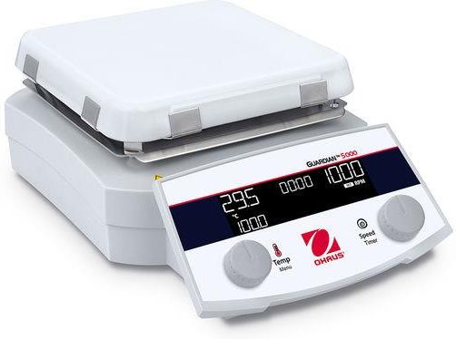 Ohaus Guardian 5000 e-G52HS07C - 30541642Profesjonalnie zaprojektowane mieszadła z płytą grzejną wyposażone w najlepsze zabezpieczenia i uniwersalne funkcje do codziennego użytku • Nasze sprawdzone funkcje SafetyHeat™ i SmartHeat™ w połączeniu z naszym nowym systemem ochrony przed pracą na sucho …