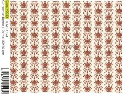 Papier do decoupage B2 50x70 - TO-DO 194 1062 Cinnamon Roma PAPIER DO DECOUPAGE’U TO-DO SOFT PAPER to jedyny papier do decoupage’u na świecie objęty patentem, idealnie dopasowuje się do kształtów dekorowanych przedmiotów. Jego unikatowe właściwości techniczne oraz wysoka jakość artystyczna czynią z niego produkt jedyny w swoim rodzaju, stworzony specjalnie do decoupage’u. Papier ten jest bardzo trwały i wygodny w użyciu. Nie wymaga moczenia przed klejeniem. oryginalne włoskie wzornictwo odporny na wysokie temperatury trwałe kolory bardzo wytrzymały idealny na każdą powierzchnię: metal, porcelanę, karton, drewno, tkaninę, wosk nie zawiera ligniny ani kwasów właściwość tkaniny (elastyczny pod wpływem wilgoci) cienki Wymiar: 50 x 70 cm
