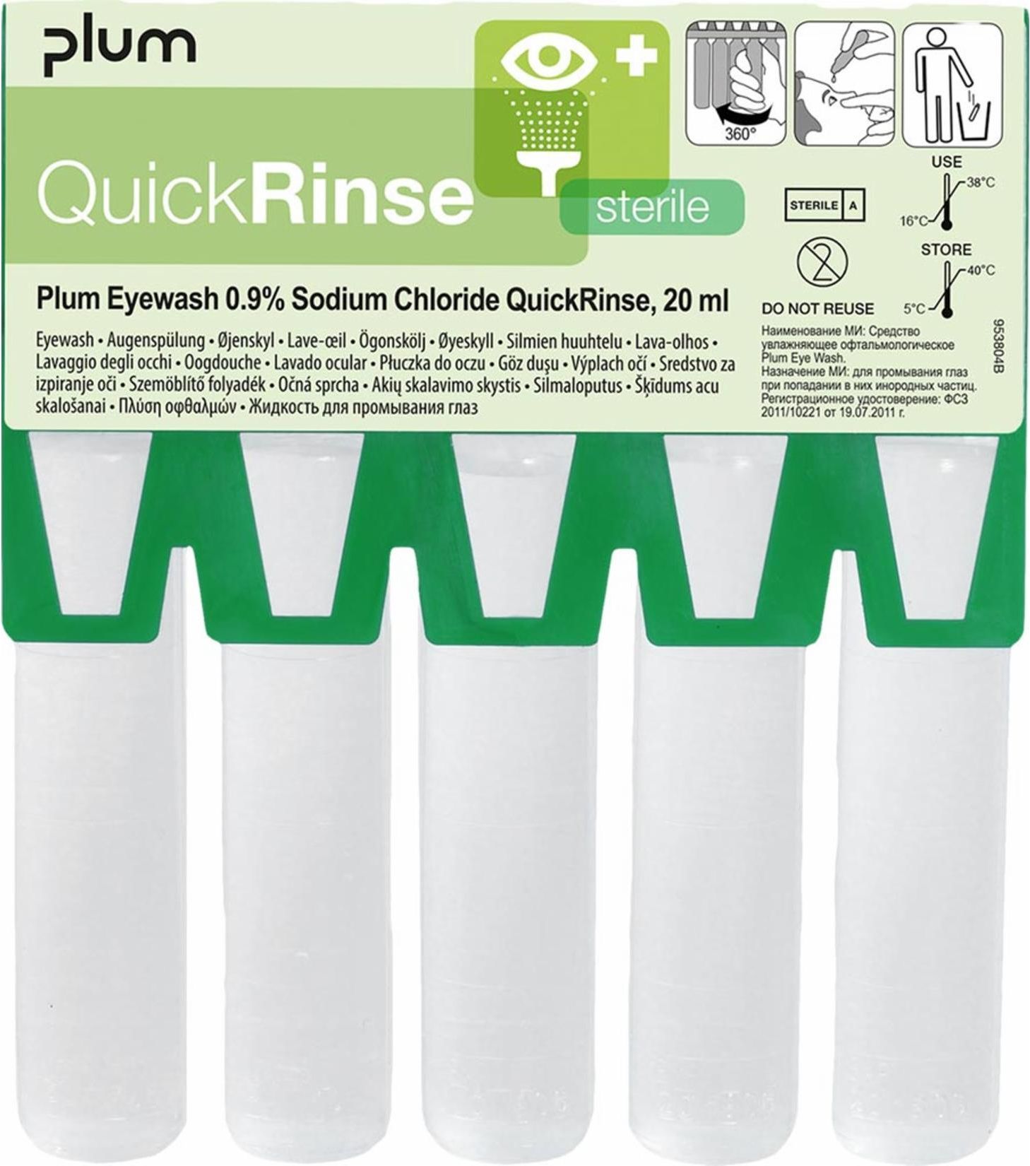 PLQUICKRINSE Płyn do płukania oczu eye wash. przeznaczony do wypłukiwania ciał stałych. Zapewnia szybką ulgę w przypadku dostania się kurzu lub brudu do oka lub w przypadku suchości oczu. Butelka zawiera 0,9% roztworu chlorku sodu. Czas płukania wynosi 2 min. Może być stosowany indywidualnie oraz jako uzupełnianie stacji QuickSafe Complete oraz Pull1Aid. W opakowaniu znajduje się 10 ampułek o pojemności 20 ml. Marka: PLUM Produkt polecany dla branż: Logistyka w tym transport i przeładunek (prace magazynowe),Obróbka metali oraz operatorzy maszyn i urządzeń oraz ich naprawa,Prace budowlane i remontowe Prace montażowo-instalacyjne Budowa dróg,Przemysł samochodowy w tym budowa, mechanika i naprawa pojazdów oraz lakiernictwo,Przemysł spożywczy w tym obsługa restauracji oraz służby zdrowia i lecznictwa,Przemysł wydobywczy w tym górnictwo,Rzemiosło w tym produkcja i obróbka szkła, ceramiki, drewna oraz drukarnie