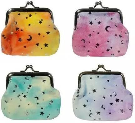 Urocza welurowa portmonetka w gwiazdeczki. Pomoże dziewczynkom zgromadzić w jednym miejscu ich pierwsze oszczędności. Produkt występuje w kilku wersjach kolorystycznych, wybierany losowo. Cena dotyczy jednej sztuki. Produkt przeznaczony dla dzieci od 3 lat. Produkt zapakowany w kartonowa podstawkę z przezroczystym kloszem.