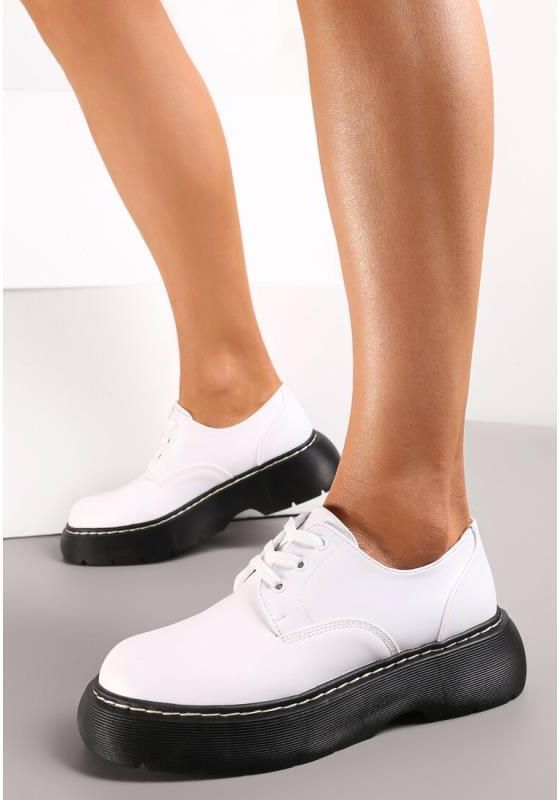 Stylowe półbuty na platfomie to ulubiony fason gwiazd, który koniecznie musi znaleźć się w Twojej szafie! Kolor: Biały Tęgość stopy: Neutralny Rodzaj obcasa: Płaski Wkładka/wyściółka: Ekoskóra Materiał: Ekoskóra Nosek buta: Okrągły Zapięcie: Sznurowanie Sezon: Przejściowy Wysokość obcasa: 5cm