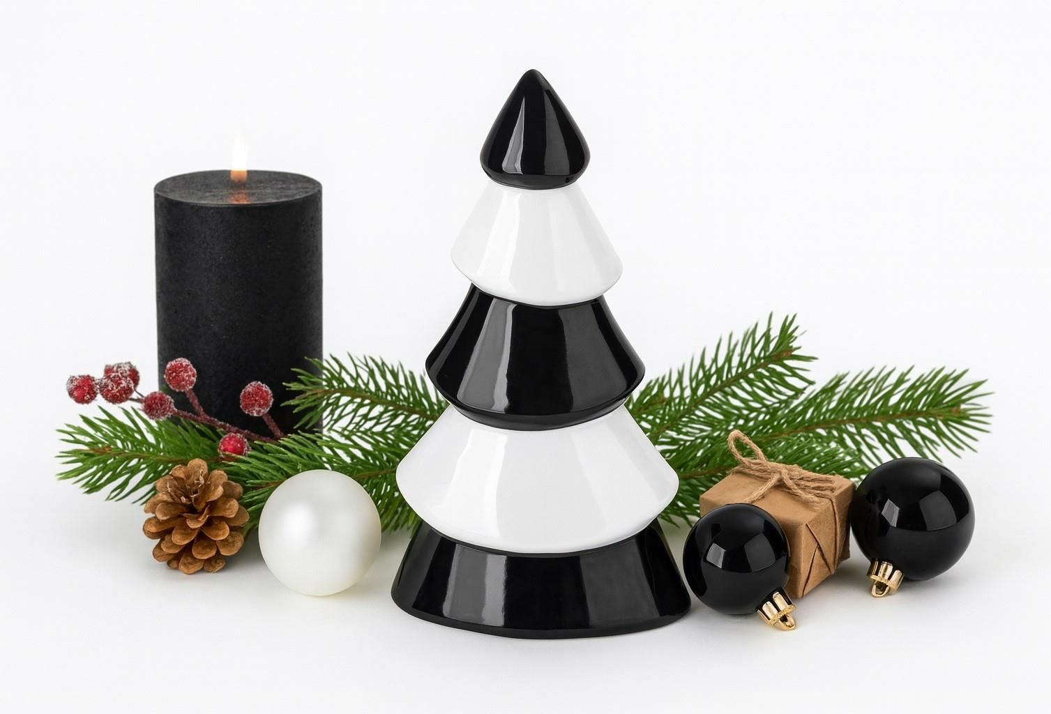Nowoczesna figurka choinki w eleganckim połączeniu czerni i bieli to stylowa dekoracja, która wprowadzi do wnętrza świąteczny nastrój w minimalistycznym wydaniu. Wykonana z wysokiej jakości ceramiki o gładkim, błyszczącym wykończeniu, wyróżnia się oryginalnym kształtem z geometrycznymi segmentami. …