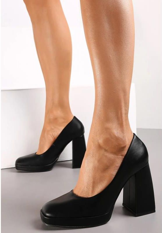 CZARNE CZÓŁENKA Z KWADRATOWYM NOSKIEM NA GEOMETRYCZNYM SŁUPKU ROZMIAR 38 Kowal