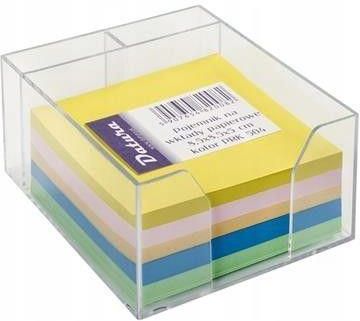 Specyfikacja - kostka nieklejona w pudełku plastikowym, przezroczystym - wkład kolorowy - wymiary: 85 x 85 x 50 mm