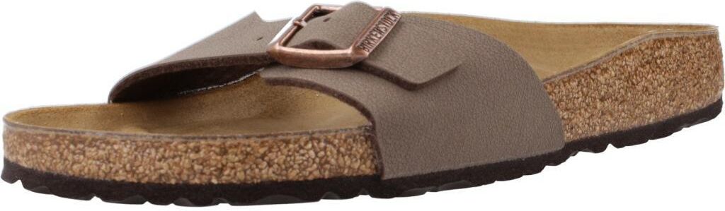 Właściwości Model Madryt jest najstarszym członkiem rodziny BIRKENSTOCK, a tym samym prawdziwym klasykiem. Lansowany pół wieku temu jako „sandał gimnastyczny", purystyczny sandał z jednym paskiem, już dawno stał się modnym i klasycznym obuwiem. Materiał wierzchni stanowi trwały i przyjazny dla skóry materiał syntetyczny Birko-Flor®, w stylu szlachetnego nubuku, który pod względem koloru i tekstury przypomina skórę naturalną. Anatomicznie ukształtowana wkładka korkowo-lateksowa Materiał wierzchni: nubuk Birko-Flor® Brandzel: skóra welurowa Podeszwa: pianka EVA Detale: pasek z indywidualnie regulowaną sprzączką z metalu “Made in Germany” Materiał wierzchni: Birko-Flor®Materiał Birko-Flor® nubuk jest wykonany z łatwego w pielęgnacji i higienicznego PCW, który od wewnątrz został podszyty miękką, oddychającą warstwą polaru. Powierzchnia wygląda jak skóra nubukowa. Ten wysokogatunkowy materiał jest bardzo wygodny i delikatny dla skóry. Wkładka do butów: ZamszElastyczna skórzana podszewka, która jest delikatna dla skóry, otula Twoje stopy i dopasowuje się do ich kształtu. Otwarta, porowata, i dzięki temu oddychająca, powierzchnia zapewnia stopom komfortowy klimat, nawet podczas najbardziej wyczerpującej aktywności fizycznej. Materiał wkładki: KorekKorek jest ekologicznym materiałem pozyskiwanym z kory dębu korkowego. Ten naturalny produkt ma właściwości izolujące i zapewnia bardzo dobrą amortyzację. Podeszwa zewnętrzna: EVATworzywo EVA (kopolimer etylenu i octanu winylu) jest wysokiej jakości, bardzo lekkim elastycznym materiałem zapewniającym bardzo dobrą amortyzację. Dzięki temu wygładza drobne nierówności podłoża i sprawia, że każdy krok jest delikatnie amortyzowany.