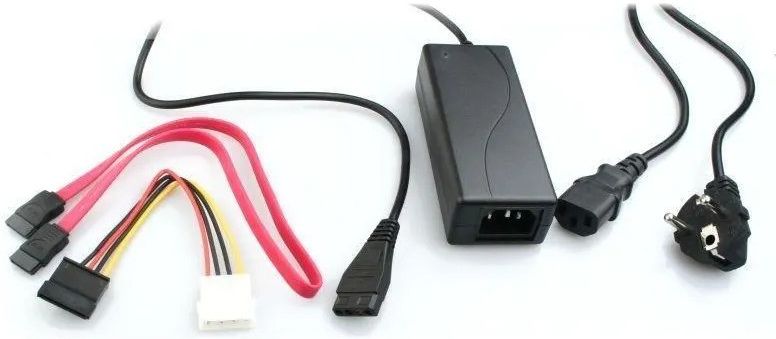 Adapter umożliwia podłączenie urządzeń SATA/ATA bezpośrednio do portu USB - Adapter stosowany do urządzeń pracujących na magistrali IDE i SATA - Szybki przesył danych – do 480Mb/s, 52X prędkość zapisu - Zasilanie z zewnętrznego zasilacza dołączonego do zestawu - Umożliwia podłączenie dysku IDE, SATA 2.5″ lub 3.5″, urządzeń CD, DVD i innych Zawartość opakowania: - Adapter IDE, SATA, 2.5", 3.5" HDD, SSD, DVD - Zasilacz 100-240VAC 50-60 Hz input, 12 VDC and 5 VDC output, up to 25 W - Kable: adapter zasilania IDE-SATA M/ kabel SATA/SATA o długości 15 cm