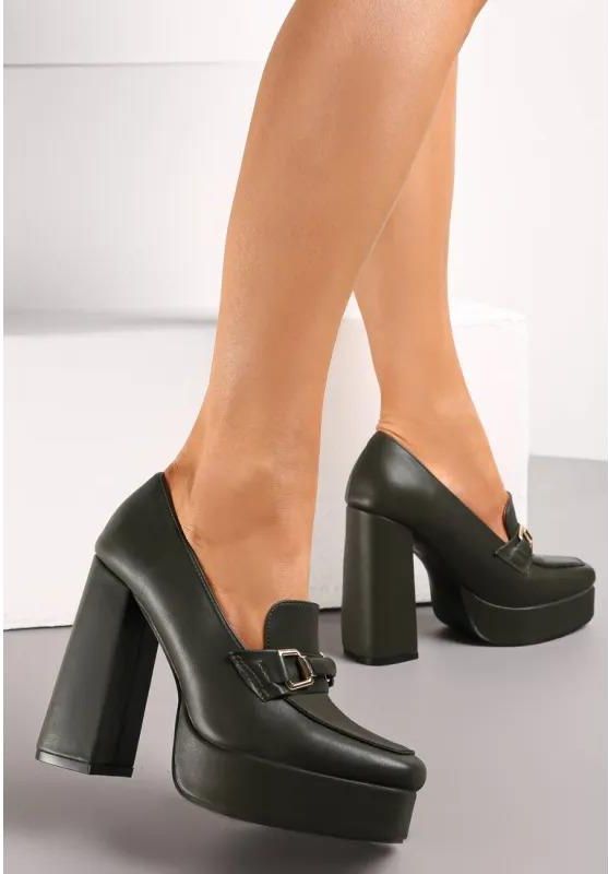 Vices Ciemnozielone Czółenka Na Platformie I Słupku Z Ozdobną Klamerką 36 Kowal