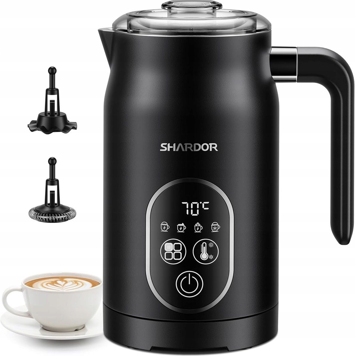 SHARDOR MF0802 elektryczny spieniacz do mleka 300 ml to nowoczesne urządzenie do przygotowania mlecznej pianki i podgrzewania mleka w domowych warunkach. Dzięki 4 trybom pracy zrobisz piankę na ciepło lub zimno, podgrzejesz mleko do kawy albo przygotujesz bardziej gęstą piankę do cappuccino. Wbudowana automatyczna regulacja temperatury pomaga uzyskać powtarzalny efekt i ogranicza ryzyko przegrzania mleka, a czarny, minimalistyczny wygląd dobrze pasuje do większości kuchni. Najważniejsze cechy - Pojemność 300 ml – wygodna do przygotowania kilku porcji mleka lub pianki. - 4 programy pracy – spienianie na ciepło, spienianie na zimno, podgrzewanie mleka, tryb gęstej pianki. - Automatyczna regulacja temperatury – kontrola ciepła dla stabilnych rezultatów. - Spieniacz i podgrzewacz w jednym – jedno urządzenie do kaw mlecznych i gorących napojów. - Stal stopowa – trwały korpus i eleganckie wykończenie. - Nowoczesny styl – czarny kolor pasuje do klasycznych i nowoczesnych wnętrz. - Łatwiejsza pielęgnacja – w zestawie szczotka do czyszczenia. Zastosowanie Spieniacz SHARDOR MF0802 sprawdzi się do przygotowania cappuccino, latte, kaw mrożonych z pianką na zimno oraz do podgrzewania mleka do kakao i innych napojów. Wybierz tryb, uruchom urządzenie i po chwili uzyskasz gotową piankę lub podgrzane mleko bez konieczności używania rondla. Informacje techniczne - Model: MF0802 - Kolor: czarny - Materiał: stal stopowa - Liczba ustawień: 4 - Funkcja specjalna: automatyczna regulacja temperatury - Zalecane zastosowanie: użytki domowe FAQ Czy urządzenie spienia mleko na zimno i na ciepło? Tak, ma tryby spieniania na zimno oraz na ciepło, a także tryb podgrzewania. Ile trybów pracy oferuje SHARDOR MF0802? Urządzenie ma 4 tryby pracy. Czy spieniacz kontroluje temperaturę? Tak, posiada automatyczną regulację temperatury, która pomaga uzyskać stabilny efekt. Co jest w zestawie? Spieniacz, 2 akcesoria do spieniania, pokrywka, kabel zasilający, szczotka do czyszczenia oraz instrukcja obsługi (w języku obcym). Czy w opakowaniu może być ślad magazynowania? Produkt może pochodzić z końcówek serii, likwidacji lub ekspozycji, dlatego opakowanie może mieć ślady magazynowania lub być otwarte do sprawdzenia. Wybierz SHARDOR MF0802, jeśli chcesz szybko przygotowywać piankę do kaw mlecznych i wygodnie podgrzewać mleko w domu – jednym urządzeniem, z automatyczną kontrolą temperatury.