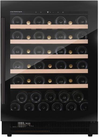 Chłodziarka do wina DAUF-46.138MB Model jednostrefowy, podblatowy mieszczący 46 butelek. Toprzeprojektowana wersja jednego z najpopularniejszych modelipodblatowych. Charakteryzuje się eleganckim wyglądem iuchwytem ze stali nierdzewnej. Model DUNAVOX Flow-46pasuje idealnie do nowoczesnej kuchni. Butelki są umieszczonena solidnych drewnianych półkach oraz oświetlone białym,bursztynowym i niebieskim oświetleniem wewnętrznym LED.Należy zwrócić uwagę, że model ten jest przeznaczony dozabudowy podblatowej. Dane Techniczne Sposób montażu podblatowy lub wolnostojący Pojemność - ilość butelek (butelka Bordeaux 0,75 litra) 46 Sposób otwierania Uchwyt Rodzaj zawiasów Standard Rodzaj wyświetlacza Dotykowy LED Ilość stref 1 Zakres chłodzenia 5-18°C Dodatkowe informacje - Nagrzewnica PTC Nie Wymagania dot. Instalacji Wentylacja cokołowa Klasa energetyczna G Zużycie energii 130 kWh/a Moc podłączeniowa 220-240V, 50Hz, 0,55A Wymiary opakowania (WxSxG) w mm 870x655x665 Wymiary produktu (WxSxG) w mm 822x595x560 Nóżki Regulacja pomiędzy 10-70mm * w zależności od modelu Półki Półki drewniane na szynach Poziom hałasu 39dB Kompresor bezdrganiowy Tak Sposób chłodzenia Chłodzenie wspomagane wentylatorem, kompresor Drzwi Odwracalne, 2 szyby z powłoką Low-E, zabezpieczone przed UV i IR Oświetlenie Multi LED ( biały, bursztynowy, niebieski) Wifi + Smart APP Nie Gwarancja 3 Lata