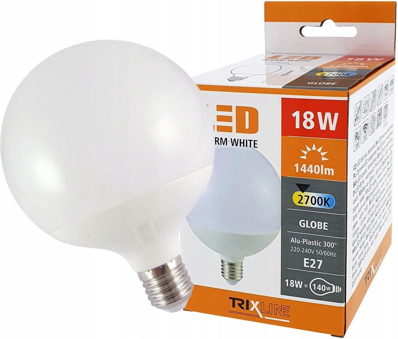 Żarówka LED Ozdobna Kula Globe G120 18W = 140W E27 2700K 1440lm TRIXLINE LED BULB TRIXLINE to ekonomiczna żarówka LED na trzonek E27, przyjazna dla środowiska, ponieważ nie zawiera rtęci ani ołowiu, ponadto świetnie sprawdza się nawet w ekstremalnie niskich i wysokich temperaturach, gdzie występują …