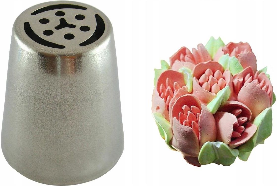 Opis Stalowa końcówka dekoracyjna kwiat to wysokiej jakości metalowe narzędzie, idealne do tworzenia dużych kwiatów na ciastach i deserach. Wykonana z trwałej stali nierdzewnej, zapewnia precyzję podczas dekorowania wypieków kremem maślanym, śmietanowym, czekoladowym, lukrem i innymi masami. Dzięki dużemu otworowi wylotowemu, tylka ta umożliwia tworzenie efektownych kwiatów, które dodają wypiekom elegancji i profesjonalnego wyglądu. Jest łatwa do czyszczenia, a zalecane mycie ręczne pomaga zachować jej doskonały stan przez długi czas. To niezastąpione narzędzie dla każdego cukiernika, zarówno profesjonalisty, jak i entuzjasty pieczenia, który chce tworzyć piękne i skomplikowane dekoracje, podnosząc estetykę swoich wypieków na wyższy poziom. Cechy szczególne Wykonana ze stali nierdzewnej Średnica końcówki: 18 mm Średnica podstawy: 31 mm Wysokość: 47 mm