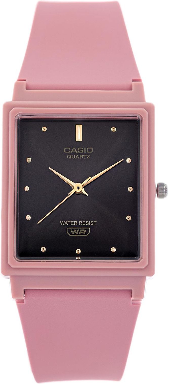 Casio SPORT MQ-38UC-4AER Zegarki już od dawna przestały pełnić jedynie funkcję użytkową, stając się istotnym elementem stylizacji. Niezależnie od okazji, dobrze dobrany zegarek może podkreślić indywidualny styl, dodając elegancji, sportowego charakteru lub nowoczesności. W dalszej części opisu przyjrzymy się bliżej aspektom, które czynią zegarek Casio SPORT MQ-38UC-4AER wyjątkowym. Rodzaj zegarka i mechanizm Ten model to klasyczny zegarek analogowy, co sprawia, że odczyt czasu jest intuicyjny i szybki. Sercem zegarka jest precyzyjny mechanizm kwarcowy, znany ze swojej niezawodności i dokładności. Mechanizmy kwarcowe są szczególnie cenione za swoją długowieczność i niskie wymagania konserwacyjne, co czyni je idealnym wyborem dla osób ceniących sobie bezproblemowe użytkowanie. Materiały koperty i szkiełko Koperta zegarka wykonana jest z lekkiego i wytrzymałego tworzywa sztucznego, co zapewnia komfort noszenia przez cały dzień. Dzięki zastosowaniu szkiełka hesalitowego, tarcza zegarka jest dobrze chroniona przed uszkodzeniami mechanicznymi, a jednocześnie zachowuje wysoką przejrzystość, umożliwiając łatwy odczyt czasu. Pasek i wymiary Zegarek wyposażony jest w stylowy pasek z tworzywa sztucznego w kolorze różowym, który idealnie komponuje się z różową kopertą zegarka. Pasek jest nie tylko estetyczny, ale także praktyczny, zapewniając wygodne noszenie nawet przez długi czas. Zegarek ma prostokątną kopertę o wymiarach 37 mm wysokości, co sprawia, że jest zarówno elegancki, jak i nowoczesny. Dzięki szerokości paska wynoszącej 18 mm, zegarek dobrze leży na nadgarstku i jest stabilny podczas noszenia. Wodoszczelność i funkcje dodatkowe Zegarek Casio SPORT MQ-38UC-4AER oferuje wodoszczelność na poziomie 30m, co oznacza, że jest odporny na zachlapania i przypadkowe kontakty z wodą. Można go więc bez obaw nosić podczas codziennych aktywności. Dodatkowo zegarek nie zawiera niklu, co jest istotną informacją dla osób z alergiami. wodoszczelność na poziomie 30m, koperta z tworzywa sztucznego, szkiełko hesalitowe, długość paska część z dziurkami: 100 mm, długość paska część ze sprzączką: 80 mm. Styl i design Casio SPORT MQ-38UC-4AER to połączenie elegancji z nowoczesnym sportowym stylem. Różowa koperta i pasek nadają mu lekkości oraz świeżości, co czyni go idealnym dodatkiem do casualowych stylizacji oraz na bardziej formalne okazje. Czarna tarcza z złotymi indeksami dodaje zegarkowi nuty elegancji, tworząc harmonijną kompozycję kolorystyczną. Podsumowanie Zegarek Casio SPORT MQ-38UC-4AER to idealny wybór dla osób poszukujących stylowego i funkcjonalnego dodatku do swojej garderoby. Jego elegancki design w połączeniu ze sportowym charakterem sprawiają, że będzie doskonałym towarzyszem na co dzień oraz podczas specjalnych okazji. Precyzyjny mechanizm kwarcowy oraz wysoka jakość materiałów użytych do jego produkcji gwarantują satysfakcję z użytkowania przez długi czas.