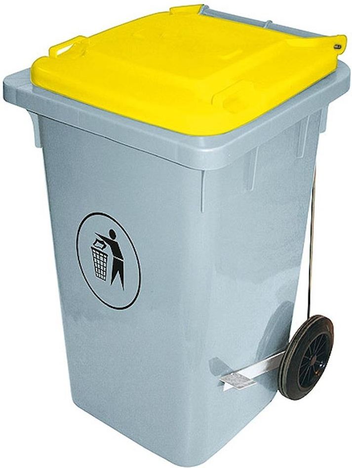 Kosz na śmieci o pojemności 100 l marki Contacto. Wyposażony w żółtą pokrywę oraz kółka ułatwiające przemieszczanie kosza. Kosz wykonany z polietylenu. Uwaga: Produkt na zamówienie. Czas realizacji ustalany przy składaniu zamówienia.