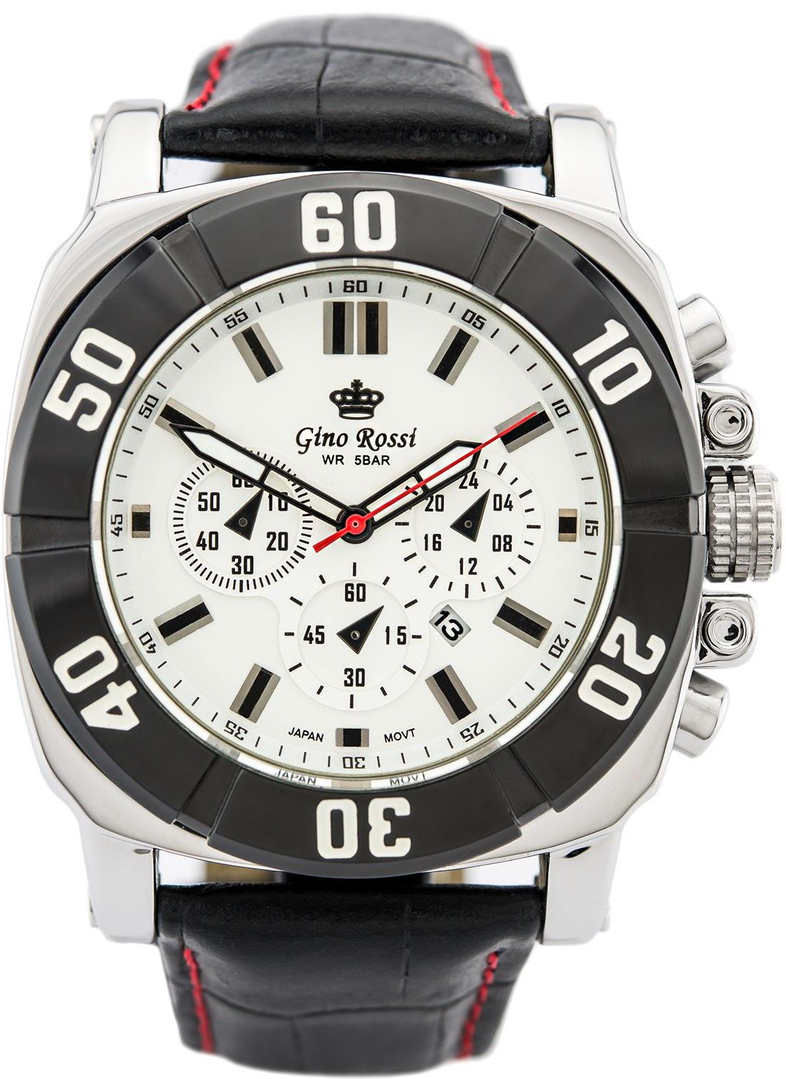 Opis zegarka: Mechanizm: Kwarcowe MIYOTA made in japan - zasilany baterią. Koperta: wykonana z wysokiej jakości stali, stop ten charakteryzuje się najwyższym stopniem odporności na korozję. Szkiełko: wysokiej jakości szkiełko mineralne, odporne na zarysowania - płaskie. Pasek: skórzany, wysoka jakość. Datownik: wskaźnik dnia miesiąca. Neobride: fosforyzowane wskazówki świecące w ciemności. Wodoszczelność: 5BAR. Odporny na deszcz i zachlapania. Kolorystyka: - koperta: srebrno-czarna - tarcza: srebrna - pasek: czarny Wymiary: -koperta : szerokość 49mm, wysokość 54mm -szerokość paska: 23mm -grubość zegarka: 13mm -obwód zegarka od 18cm do 22,5cm Gwarancja: Na zegarek jest udzielana 24 miesięczna gwarancja. Dodatkowe informacje: Plating IPS/IPG: jonowa metoda nakładania powłoki zegarka, pozwalająca na uzyskanie jednolitej gładkości powierzchni o podwyższonej odporności na ścieranie. Na tarczy: ozdobne zegary Nickel free: zegarek nie uczula - antyalergiczny.