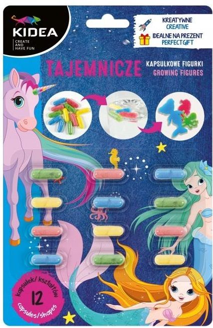 Tajemnicze kapsułkowe figurki 12 szt. Kidea DERFORM ✅ ✔️ Wyrusz w podróż do krainy magii z Tajemniczymi kapsułkami figurek Kidea. Skrywają one w sobie ukryte kształty, które ujawniają się po zanurzeniu w wodzie. Wrzuć kapsułkę do wanny lub miski z ciepłą wodą, a zobaczysz, jak zaczynają się …