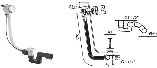 VEDO CLASSIC II Przelew wannowy z korkiem automatycznym i funkcją napełniania wanny 57 cm 342A/60/CH chromfunkcja napełniania wanny przez przelew BATH FILLERrura przelewowa i cięgno BOWDENA 57cmsyfon z króćcem odpływowym 40/50mmpokrętło i korek odpływowy: mosiądzUWAGA: Produkt przeznaczony do montażu w wannach wyłącznie o rozstawie osi otworów w zakresie 52-57cm...