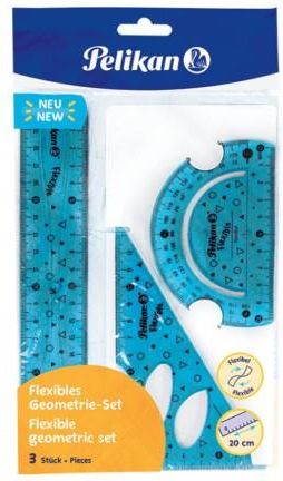 Zestaw geometryczny PELIKAN kol. niebieski 20cm elastyczny Zestaw geometryczny marki PELIKAN zawiera elastyczną linijkę (20 cm), ekierkę oraz kątomierz, idealny do codziennego użytku w szkole i pracy. Elastyczność materiału zapewnia odporność na złamania, co czyni go trwałym i wygodnym narzędziem do precyzyjnych pomiarów i rysunków geometrycznych. zawartość: linijka, ekierka, kątomierz długość linijki: 20 cm materiał: elastyczny kolor: niebieski