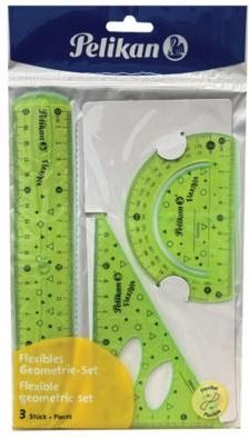 Zestaw geometryczny PELIKAN kol. zielony 20cm plastik elastyczny kątomierz, ekierka, linijka [700917] Koziegłowy