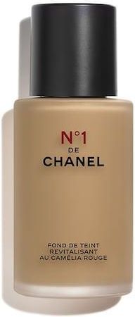 Czerwona kamelia to niespotykany kwiat i kluczowy składnik N°1 DE CHANEL. Kwiat ten posiada właściwości rewitalizujące, a jego niezwykła energia zapewnia mu nieprzemijającą młodość. Dział Badań CHANEL wykorzystał jego wyjątkowe walory, by stworzyć nową generację produktów do pielęgnacji i makijażu wraz z mgiełką zapachową. Ekstrakt z czerwonej kamelii, jako wiodący składnik zrównoważonej linii kosmetycznej N°1 DE CHANEL, przeciwdziała pierwszemu stadium procesu starzenia się skóry: zapobiega pięciu oznakom starzenia się i koryguje już istniejące. Dzięki stosowaniu rytuału pielęgnacyjnego N°1 DE CHANEL zmarszczki ulegają redukcji, a pory widocznemu zwężeniu. Skóra odzyskuje elastyczność, odczuwa większy komfort i promienieje witalnością. Podkład N°1 DE CHANEL zawiera olejek z czerwonej kamelii oraz czynniki nawilżające. W formule znajduje się 94% składników pochodzenia naturalnego. Produkt chroni skórę, zmiękcza i zapewnia jej komfort przez cały dzień. Wypełniona skóra z każdym dniem wygląda naturalnie piękniej, a cera emanuje młodzieńczym blaskiem Produkt dostępny w 20 odcieniach. Efekt makijażu można modulować. Rozświetla - nawilża - chroni