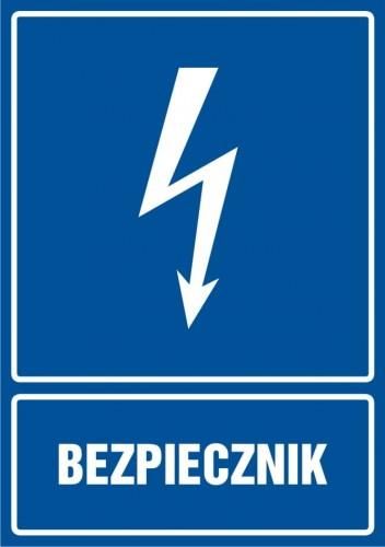 Tablica informująca o obecności bezpiecznika w oznaczonym miejscu. Znaki w formatach: FC 42 x 59,4 cm, FI 59,4 x 84,1 cm na podłożu p - wykonujemy na płycie sztywnej PCV o grubości 1,5 mm