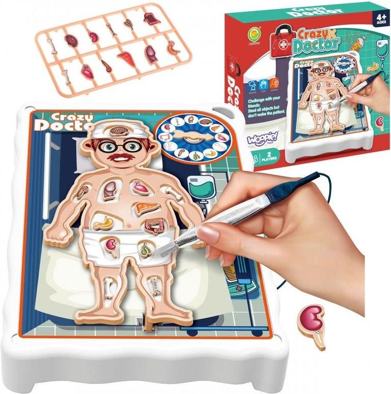 OPERACJA Szalony Lekarz Gra elektroniczna DOKTOR zabawa w LEKARZA ZABAWKA Gra elektroniczna "OPERACJA" - Interaktywna zabawa i edukacja "OPERACJA - szalony lekarz " – edukacyjna zabawka dla dzieci Gra Zręcznościowa Operacja Doktor Plansza Elektroniczna Lekarz dla Dzieci Gra „OPERACJA - szalony lekarz” to interaktywna zabawka edukacyjna, która rozwija zdolności manualne, uczy podstaw anatomii i stymuluje koncentrację. Idealny prezent dla dziecka! Parametry wymiar opakowania: 30 cm x 26 cm x 5 cm waga: 0,385 kg płeć: dziewczynka, chłopiec baterie: 3 x 1,5 AA (brak w zestawie) Wiek: od 4 lat Zestaw zawiera 12 x części ciała 1 x peseta 1 x plansza SZALONY LEKARZ GRA ZRĘCZNOŚCIOWA PLANSZOWA OPERACJA MAŁY DOKTOR Jak działa gra "OPERACJA - szalony lekarz" ? Gra elektroniczna "OPERACJA - szalony lekarz" symuluje operację na pacjencie. Głównym celem gry jest precyzyjne usunięcie różnych elementów z ciała pacjenta bez dotykania brzegów rany, co wymaga dużej precyzji i koncentracji. Każde dotknięcie krawędzi powoduje wydanie sygnału dźwiękowego, co dodaje emocji i sprawia, że gra staje się jeszcze bardziej angażująca. Gra nie tylko bawi, ale także uczy. Dzieci zapoznają się z podstawowymi terminami medycznymi i anatomicznymi, co może wzbudzić w nich zainteresowanie światem medycyny. Ponadto, zabawa tą grą rozwija zdolności manualne i poprawia koordynację ręka-oko, co jest szczególnie ważne dla dzieci w wieku przedszkolnym i szkolnym. Funkcje gry "OPERACJA - szalony lekarz" Precyzyjna operacja – celem gry jest precyzyjne usunięcie elementów z ciała pacjenta bez dotykania brzegów. Sygnały dźwiękowe – każdy błąd, polegający na dotknięciu krawędzi rany, powoduje wydanie dźwięku, co dodaje emocji. Anatomia człowieka – gra wprowadza dzieci w podstawowe pojęcia anatomiczne, takie jak serce, płuca czy żołądek. Zabawa solo i w grupie – gra może być świetną rozrywką zarówno dla jednego dziecka, jak i w większym gronie, co czyni ją idealnym rozwiązaniem na wspólne zabawy. Dlaczego warto wybrać grę "OPERACJA - szalony lekarz" ? 1. Zabawka edukacyjna rozwijająca ważne umiejętności Gra elektroniczna "OPERACJA - szalony lekarz" to nie tylko zabawa, ale także narzędzie wspierające rozwój wielu umiejętności dziecka. Zdolności manualne, koncentracja oraz podstawy wiedzy anatomicznej to kluczowe aspekty, które mogą pomóc dziecku w codziennym życiu i nauce. 2.Idealna zabawa dla całej rodziny Gra jest doskonałym wyborem na wspólne spędzanie czasu w gronie rodzinnym. Dzięki prostym zasadom, zarówno dzieci, jak i dorośli mogą w niej uczestniczyć, co sprawia, że jest to świetny sposób na budowanie więzi i integrację w rodzinie. 3. Wysoka jakość wykonania Zabawka jest wykonana z wysokiej jakości materiałów, co zapewnia trwałość i bezpieczeństwo. Elementy gry są solidne i dobrze zaprojektowane, co sprawia, że gra może służyć przez długi czas, nawet podczas intensywnego użytkowania. Zastosowanie gry W domu – idealna do zabawy zarówno dla jednego dziecka, jak i całej rodziny. W przedszkolach i szkołach – gra może być wykorzystywana jako narzędzie edukacyjne podczas zajęć związanych z anatomią czy medycyną. Na prezent – gra „Zabawa lekarz operacja” to świetny pomysł na prezent dla dzieci, które interesują się medycyną lub lubią wyzwania wymagające precyzji. Doskonały prezent! Estetyczne, kolorowe opakowanie sprawia, że gra idealnie nadaje się na prezent – każdemu maluchowi sprawi wiele radości. wymiar opakowania: 30 cm x 26 cm x 5 cm waga: 0,385 kg płeć: dziewczynka, chłopiec baterie: 3 x 1,5 AA (brak w zestawie) Wiek: od 4 lat Zabawka posiada europejski certyfikat CE