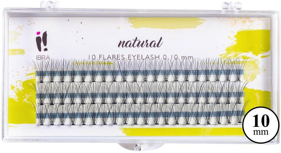 Ibra - ,,NATURALS" FLARES EYELASH - KNOT-FREE - Kępki sztucznych rzęs - 0.10-C-10 mm 10 FLARES EYELASH - KNOT-FREE NATURALS marki Ibra. Kępki rzęs o profilu C. Wersja NATURALS sprawia, że rzęsy będą wyglądały na powiekach bardzo naturalnie. Ponadto, nadadzą spojrzeniu zalotnego efektu. Są bezproblemowe w aplikacji i niewyczuwalne podczas noszenia. W jednym opakowaniu znajduje się 60 kępek, wykonanych z włosa syntetycznego. Całość umieszczono w zamykanej, plastikowej kasetce, która ułatwia transportowanie i przechowywanie. Kępki rzęs. W skład jednego zestawu wchodzi 60 kępek. Zapewniają naturalny, zalotny efekt. Umieszczone w opakowaniu ułatwiającym transport. Wykonane z syntetycznych włosów.