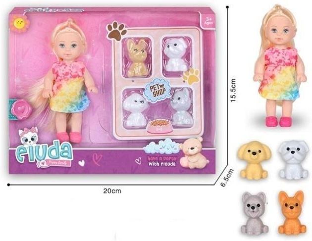 Odkryj magiczny świat zabawy z naszym uroczym zestawem! W skład kompletu wchodzi śliczna lalka w kolorowej sukience i różowych bucikach, gotowa na wspaniałe przygody w swoim własnym sklepie zoologicznym. Towarzyszą jej cztery urocze figurki zwierzątek: biały piesek, szary piesek, beżowy piesek i …