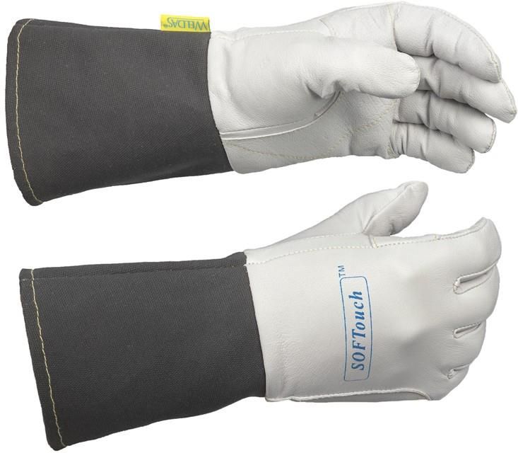 RĘKAWICE SPAWALNICZE TIG WELDAS 10-1004 - L, 1 para Rękawice spawalnicze z wysokiej jakości skóry koziej, wzmacniane podwójną skórą w części chwytnej szyte nićmi kevlarowymi. Producent: Weldas. Materiał: Skóra Przeznaczenie: Spawalnicze Producent: Weldas Rozmiar: L Ilość: 1 para RĘKAWICE SPAWALNICZE TIG WELDAS 10-1004 Rękawice spawalnicze SOFTouch™ wykonane z wysokiej jakości koziej skóry w części dłoniowej oraz mankiety z szarego trudnopalnego materiału szyte nićmi KEVLAR®. Podwójna skóra w części chwytnej zapewnia bezpieczeństwo w czasie wykonywanej pracy. ZASTOSOWANIE Rękawice spawalnicze przeznaczone do spawania metodą TIG PARAMETRY materiał: wysokiej jakości skóra kozia (część dłoniowa), mankiet wykonany z szarego, trudnopalnego materiału szyte nićmi KEVLAR® 3 ply typu spawalniczego cześć dłoniowa wykonana z koziej skóry podwójna skóra w części chwytnej duża miękkość i doskonałe czucie długość rękawicy: 35cm kolor: biało-szary producent: WELDAS norma: EN 12477 (2001+A1 : 2005) TYPE B certyfikaty: TÜV BP 60118529 0001, TÜV 21264046 002
