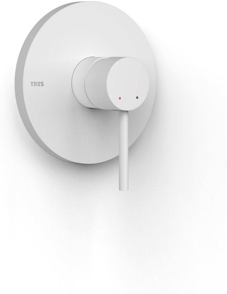 TRES STUDY EXCLUSIVE bateria natryskowa podtynkowa, biały mat Gwarancja Producent udziela 5-letniej gwarancji na baterie oraz 2 lata na pozostałe elementy. Główne cechy: - kolor: biały mat - rodzaj: natryskowa - typ: jednouchwytowa - montaż: podtynkowa - zawiera płytę dekoracyjną, uchwyt, tuleja i ukrytą śrubę mocującą - uzupełnienie do wpuszczanego korpusu Rapid-box Dane techniczne: - średnica rozety: 161 mm W zestawie brak elementu podtynkowego TRES RAPID BOX(20827810), który należy zakupić oddzielnie.