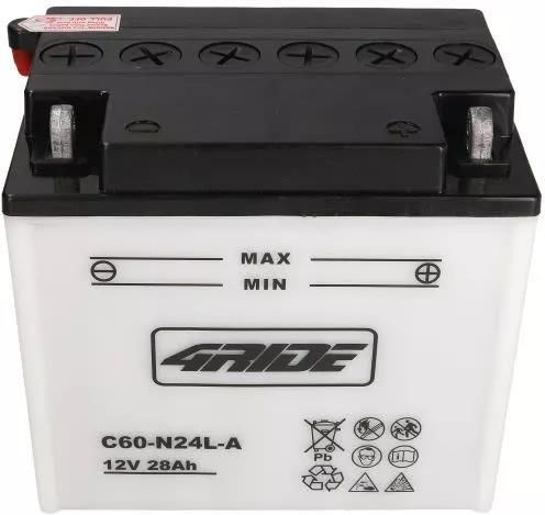 Akumulator kwasowy/rozruchowy/suchoładowany z elektrolitem (ograniczona sprzedaż konsumencka) 4 ride 12v 28ah 300a p+ obsługowy elektrolit w zestawie 185x125x176mm suchoładowany z elektrolitem c60n24l.