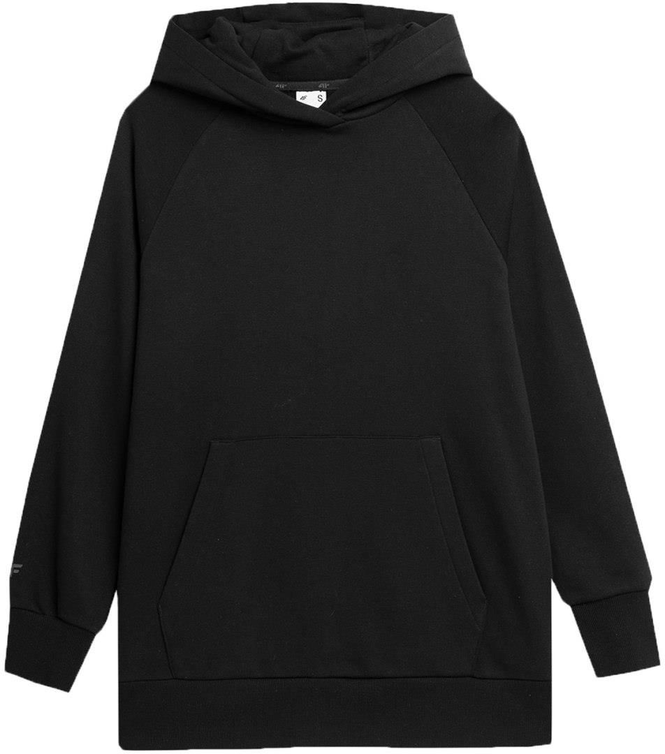 Bluza damska 4F F0955 głęboka czerń 4FWSS24TSWSF0955 20S Damska bluza 4F to idealna propozycja dla wszystkich miłośniczek sprawdzonych rozwiązań. Konstrukcja będącą połączeniem bawełny oraz poliestru jest wytrzymała i dba o naturalną wentylację ciała bez ryzyka wystąpienia podrażnień. Standardowy krój o długości do bioder. Bluza wkładana przez głowę. Nieodpinany kaptur bez regulacji. Wnętrze bez podszycia. Dzianina dresowa french terry na zewnątrz jest gładka, a wewnątrz ma widoczny splot w postaci pętelki. Mankiety ze ściągaczem. Niezapinana kieszeń kangurka na przodzie. Wkładana przez głowę. Raglanowe rękawy nie krępują ruchów. Dół ze ściągaczem. Materiał główny: 77% bawełna, 23% poliester Materiał dodatkowy: 95% bawełna, 5% elastan