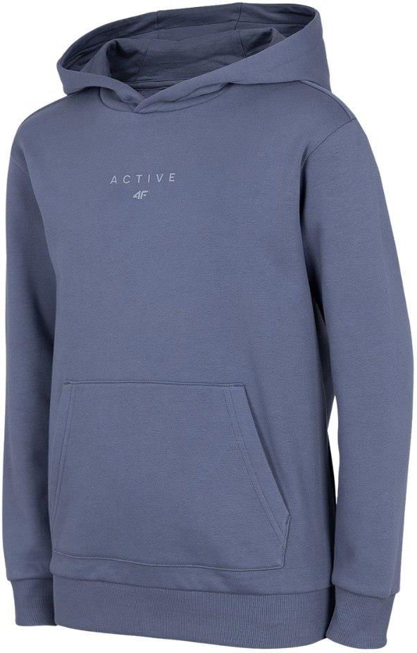 Bluza dla dziewczynki 4F denim HJZ22 JBLD003 32S Bluza dla dziewczynki 4F sprawdzi się podczas codziennego użytkowania. Czesane wnętrze zapewnia komfort cieplny. Standardowy krój zapewnia nieograniczoną swobodę ruchów. Elastyczny ściągacze przy mankietach i u dołu. Kaptur bez regulacji. Kieszeń kangurka na przodzie. Odblaskowy nadruk tekstowy. Uszyta z miękkiej dzianiny z wysoką zawartością bawełny. Materiał główny: 78% bawełna, 22% poliester