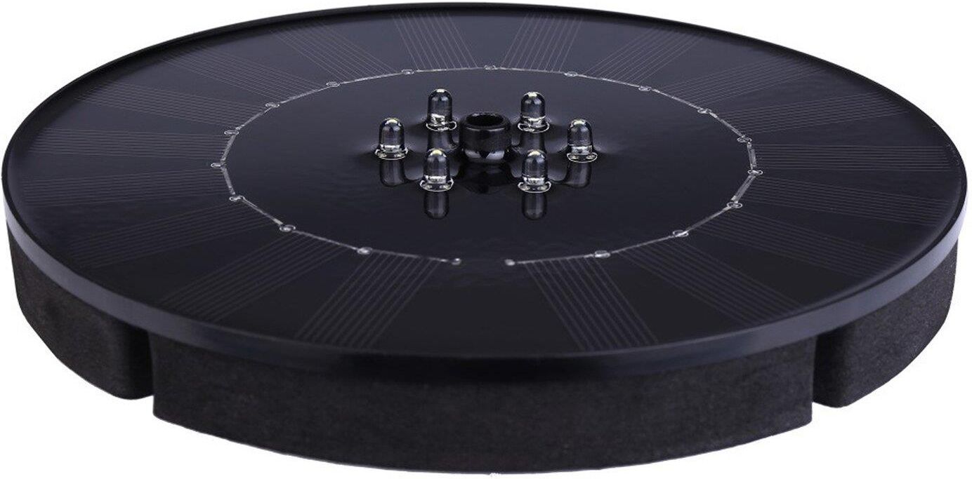 Pływająca fontanna stanowi ciekawy element dekoracyjny oczek wodnych. 7 różnych dysz umożliwia zmianę strumienia wody. Oświetlenie LED dodaje uroku oczku wieczorem. Zasilanie słoneczne. Nie wymaga dodatkowej pompy.