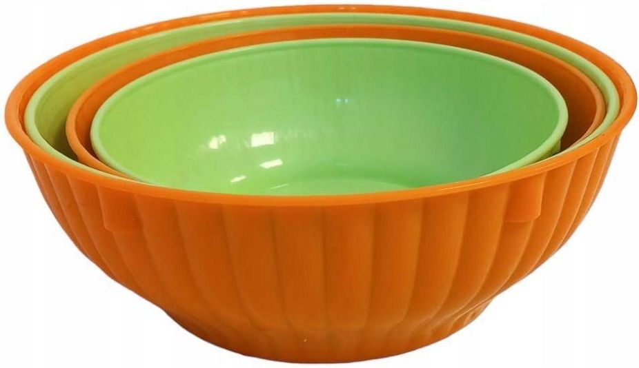 Miski salaterki 4szt AAMAZON Towar powystawowy, outletowy, stoki magazynowe. Urządzenia mogą posiadać opakowania zastępcze lub oryginalne. Średnica 20 - 22 - 24 - 26 cmTworzywo sztuczne dopuszczone do styczności z żywnością, bardzo wytrzymałe, nadaje się do mycia w zmywarce i do użytku w kuchence mikrofalowej. W 100% nadaje się do recyklingu. Specyfikacja: Ilość: 4 sztuki Marka: I.P.P.A. Wymiary opakowania: . 32 x 30 x 15 cm; 821 gr Kolor: zielony i pomarańczowy