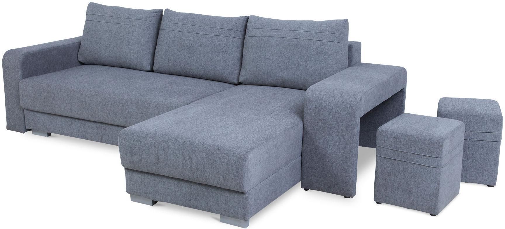 Narożnik Vegas z funkcją spania, mechanizmem ułatwiającym rozkładanie oraz pojemnikiem na pościel. Narożnik wykonany w tkaninie Massimo 417 w kolorze popielatym. Narożnik Vegas dostępny w opcji uniwersalnej (prawy/lewy). Narożnik posiada w komplecie dwie pufy chowane w bok narożnika. Jako element …