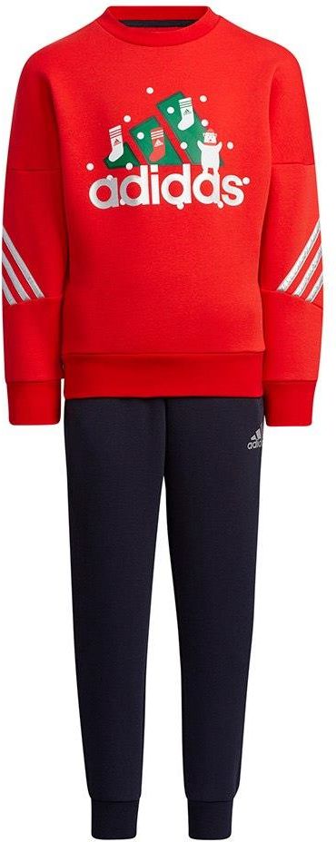 Dres dla dzieci adidas LK Holiday Set czerwono-granatowy H40344 Dres dla dzieci adidas pozwoli poczuć dziecku magię świąt! Zestaw zawiera bluzę wykonana z miękkiej tkaniny z bawełnianymi włóknami, które dbają o wentylację ciała i nie powodują podrażnień. Ściągacze zapobiegają utracie ciepła w chłodniejsze dni. Bluza w kolorze czerwonym zyskała logo producenta oraz print z motywem świątecznym. Granatowe spodnie dobrze współgrają zresztą zestawu. Konstrukcja z wysoką zawartością bawełny. Elastyczna talia pozwala na idealne dopasowanie. Dwie kieszenie boczne na drobiazgi. Ściągacze u dołu. Materiał: 70% bawełna, 30% poliester