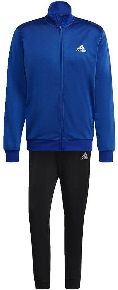 Dres męski adidas Primegreen Essentials Small Logo niebiesko-czarny HE1882 Męski dres sportowy adidas sprawdzi się podczas treningów piłkarskich lub odpoczynku poza boiskiem. Standardowy krój. Bluza: suwak na całej długości i stawiany kołnierz. Dół bluzy i rękawy zakończone ściągaczem. Bluza i spodnie: boczne kieszenie. Haftowane logo. Spodnie z elastyczną talią regulowaną sznurkami i zwężanymi nogawkami wykończonymi ściągaczami. Materiał: 100% poliester