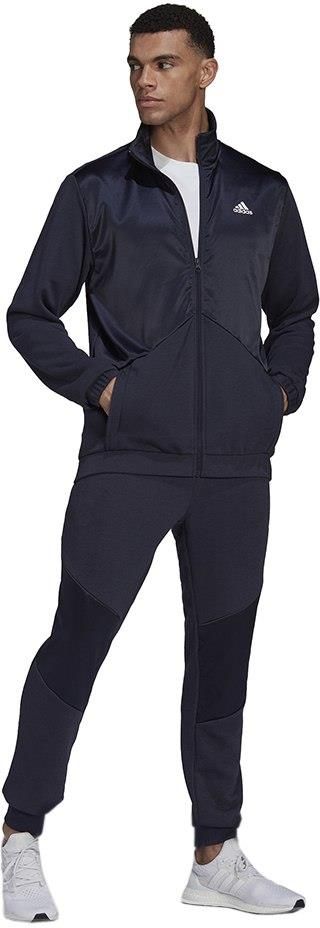 Dres męski adidas Satin French Terry Track Suit granatowy HI5396 Dres męski adidas sprawdzi się podczas codziennych aktywności. Standardowy krój. Lekko połyskujący materiał. Bluza: suwak na całej długości i stawiany kołnierz ze ściągaczem, boczne kieszenie zapinane na suwaki, mankiety i dół ze …