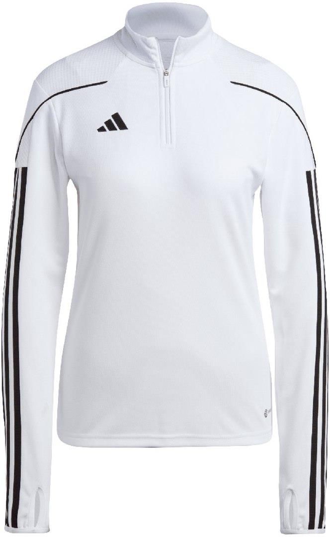 Bluza damska adidas Tiro 23 League Training Top biała HS3485 Bluza piłkarska adidas przeznaczona dla kobiet sprawdzi się podczas treningów. Stójka. Zamek sięgający do połowy piersi. Dopasowany krój. Technologia Aeroready pomaga osuszać skórę i zwiększa wygodę. Paski na rękawach. Subtelne logo. Szybkoschnące włókna. Drobnowzorzysta grafika na plecach. Materiał: 100% poliester z recyklingu
