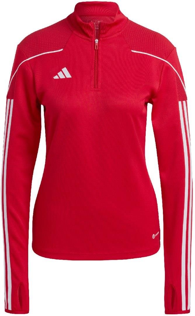 Bluza damska adidas Tiro 23 League Training Top czerwona HS3482 Bluza piłkarska adidas przeznaczona dla kobiet sprawdzi się podczas treningów. Stójka. Zamek sięgający do połowy piersi. Dopasowany krój. Technologia Aeroready pomaga osuszać skórę i zwiększa wygodę. Paski na rękawach. Subtelne logo. Szybkoschnące włókna. Drobnowzorzysta grafika na plecach. Materiał: 100% poliester z recyklingu