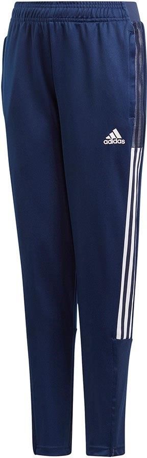 Spodnie dla dzieci adidas Tiro 21 Training granatowe GK9659 Spodnie dresowe dla dzieci adidas Tiro 21. Model w kolorze granatowym sprawdzi się w czasie codziennego użytkowania oraz podczas aktywności. Elastyczna talia regulowana sznurkiem, Dwie kieszenie boczne zapinane na zamek. Dopasowany krój. Miękka tkanina wyklucza ryzyko wystąpienia podrażnień. Model w kolorze czarnym z białymi detalami. Materiał: 100% poliester pochodzący z recyklingu