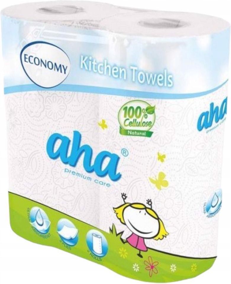 Ręcznik kuchenny AHA Economy 2szt HANKE TISSUE Ręcznik kuchenny celulozowy biały, przeznaczony do wycierania rąk, szyb, naczyń i mokrych powierzchni. Jest chłonny i wytrzymały.materiał: 100% celulozawarstwy: 2ilość listków: 50kolor: biały Cena za 1 opakownie 2 rolki