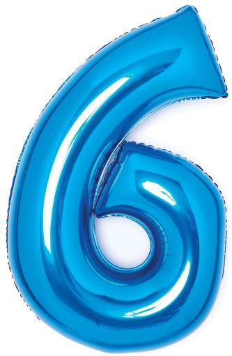 Balon foliowy cyfra 6 niebieski zapakowany 46 cm x 66 cm Oprawa: folia Format: 187x146 mm