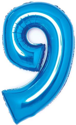 Balon foliowy cyfra 9 niebieski zapakowany 47 cm x 66 cm Oprawa: folia Format: 185x144 mm