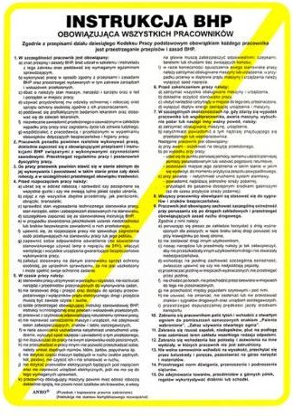Instrukcja BHP ?BHP obowišzujšca wszystkich pracowników?. - format znaku L w rozmiarze 250x350 - wykonany z płyty PCV