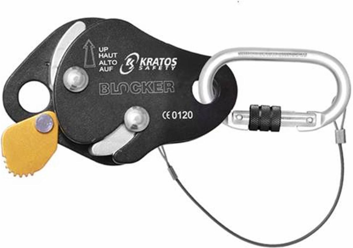 I41 Urządzenie samozaciskowe do liny o średnicy 11 mm. Możliwość blokady pozycji roboczej. ZASTOSOWANIE: prace w zawieszeniu (3). Prace na skośnych dachach (5). Materiał: poliester, poliamid, stal. Norma: EN 353-2. Kolor: czarny.