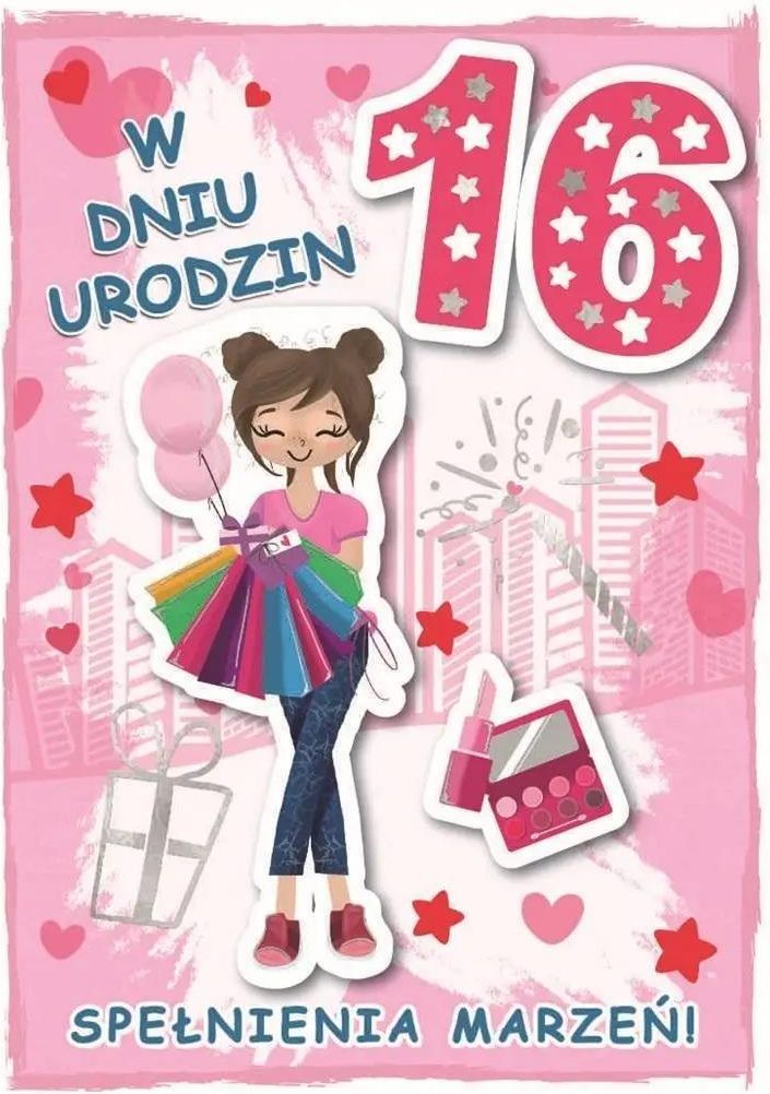 Karnet urodziny 16Armin Style ➡️ Firma i usługi/Biuro i Reklama/Reklama/Akcydensy (poligrafia)/Pocztówki i widokówki ✔️ Karnet formatu B6 ze złoceniami lub srebrzeniami, a także z przestrzennymi elementami na froncie EAN: 5905815792636 Format: 200x134 mm Oprawa: folia Wydawnictwo: Armin Style ✔️ …