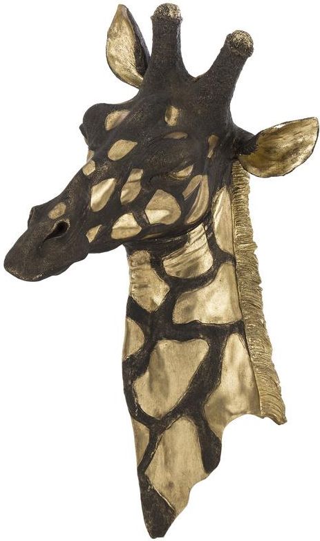 Ozdoba Ścienna Głowa Żyrafy. Materiał: tworzywo sztuczne. Rozmiar: 77x43x29 cm. Kolor: czarny, złoty. Dekoracja dla miłośników oryginalnych ozdób. Wsz...