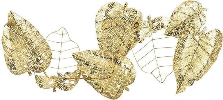DEKORACJA ŚCIENNA METALOWA OBRAZ LIŚCIE ROŚLINY Dekoracje do pokoju / Ozdoby na ścianę / Metaloplastyka Metalowa dekoracja świetnie wypełni nasze puste przestrzenie na ścianach. Jest dobrą alternatywą dla tradycyjnych obrazów. Idealnie sprawdzi się w salonie, kuchni, sypialni czy przedpokoju. Dekoracja z serii metaloplastyka to oryginalna i bardzo nowoczesna ozdoba na ścianę. Nada niesamowity klimat pomieszczeniu. Dekoracja do pokoju dla miłośników oryginalnych ozdób. Pomysł na prezent! Cechy produktu: Kolor złoty Materiał: metal Wysokość: 47 cm Szerokość: 100 cm Głębokość: 5 cm Styl: modern, vintage, loft, nowoczesny
